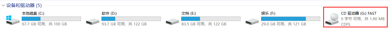 免驱版网卡插入电脑USB口后,“设备和驱动器”没有识别到带FAST标识的CD驱动器,无法继续安装网卡驱动:
